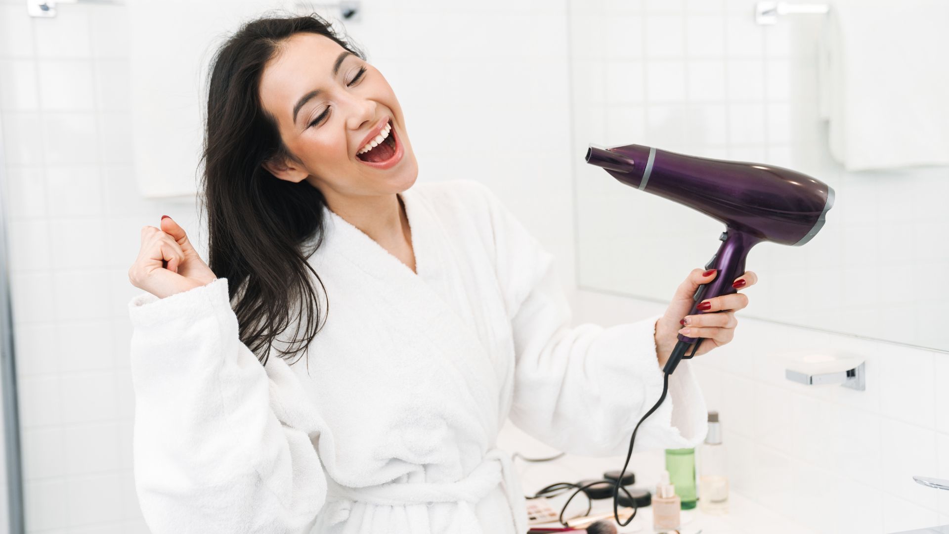 Fast morning hair routine with a blow dryer, showing the best way to dry your hair quickly before work in Denver.