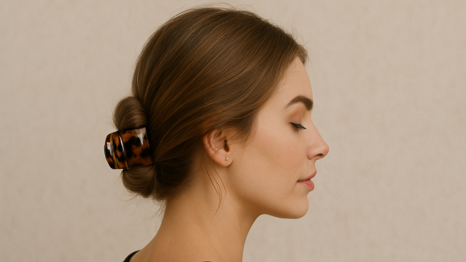 The claw clip has made a major comeback and is ideal for busy mornings. Simply twist your hair into a low roll, secure with a stylish claw clip, and allow a few strands to fall naturally. It’s one of the easiest ways to create a chic updo, and it’s especially popular for clients searching for a polished updo that doesn’t take salon-level effort.